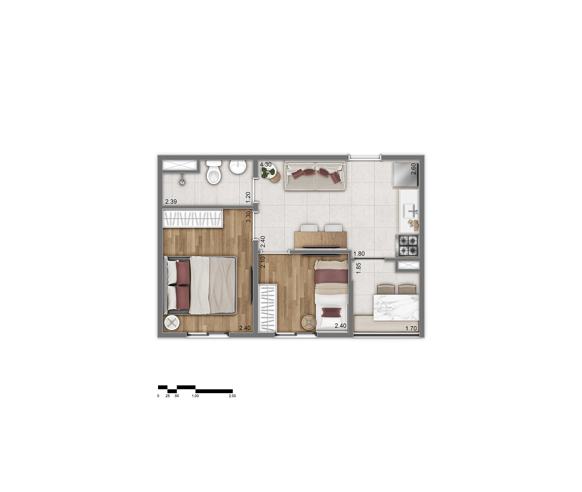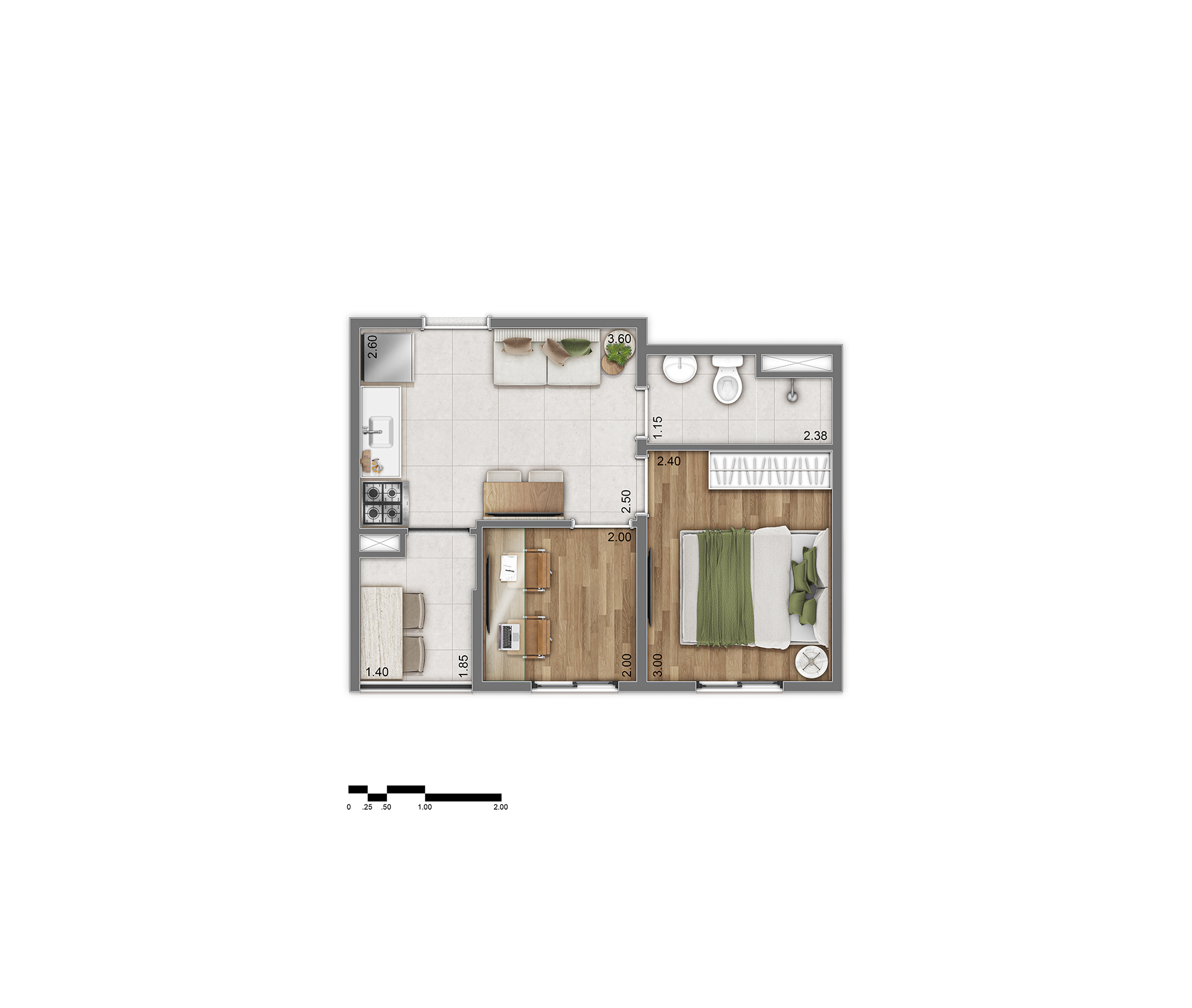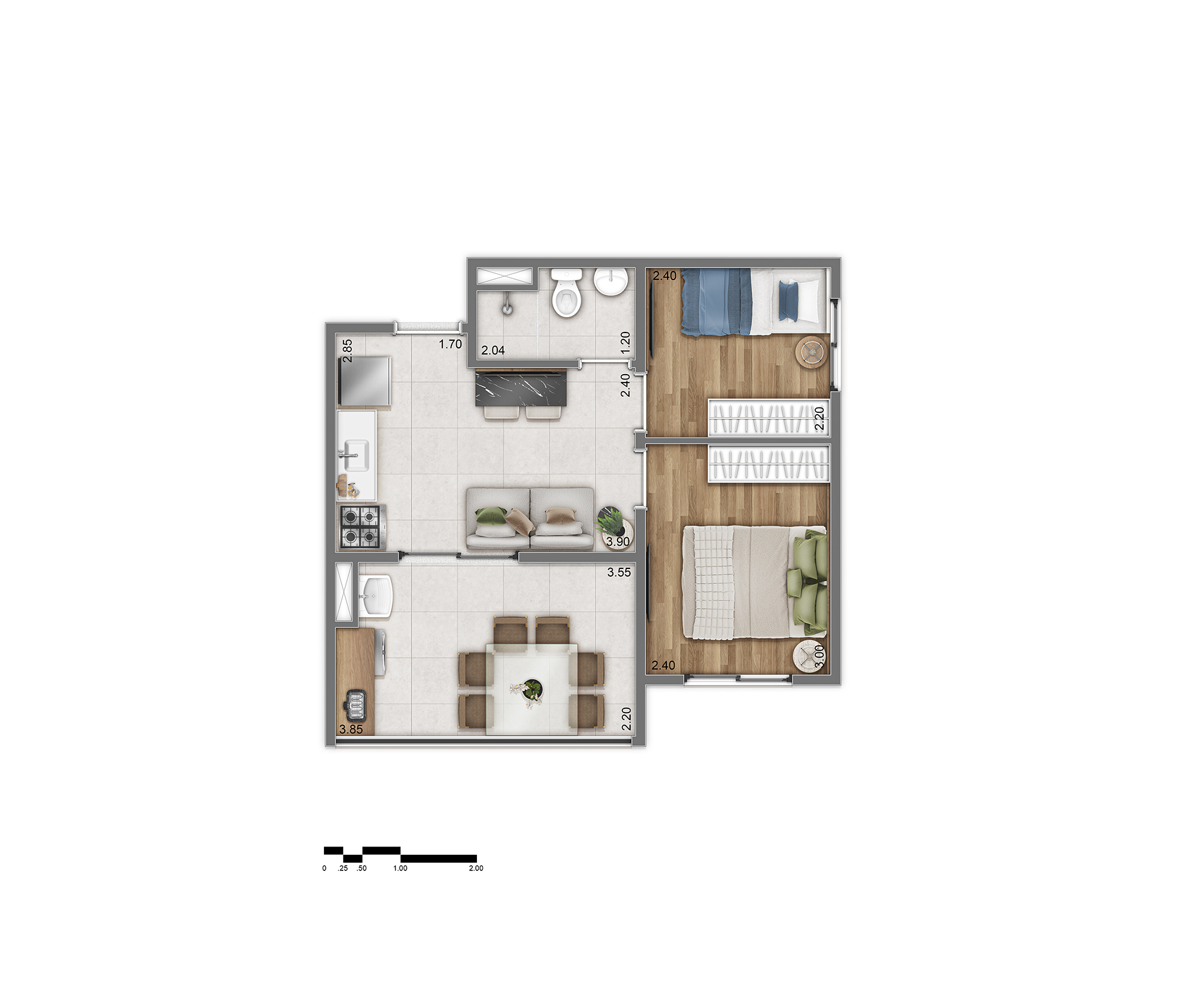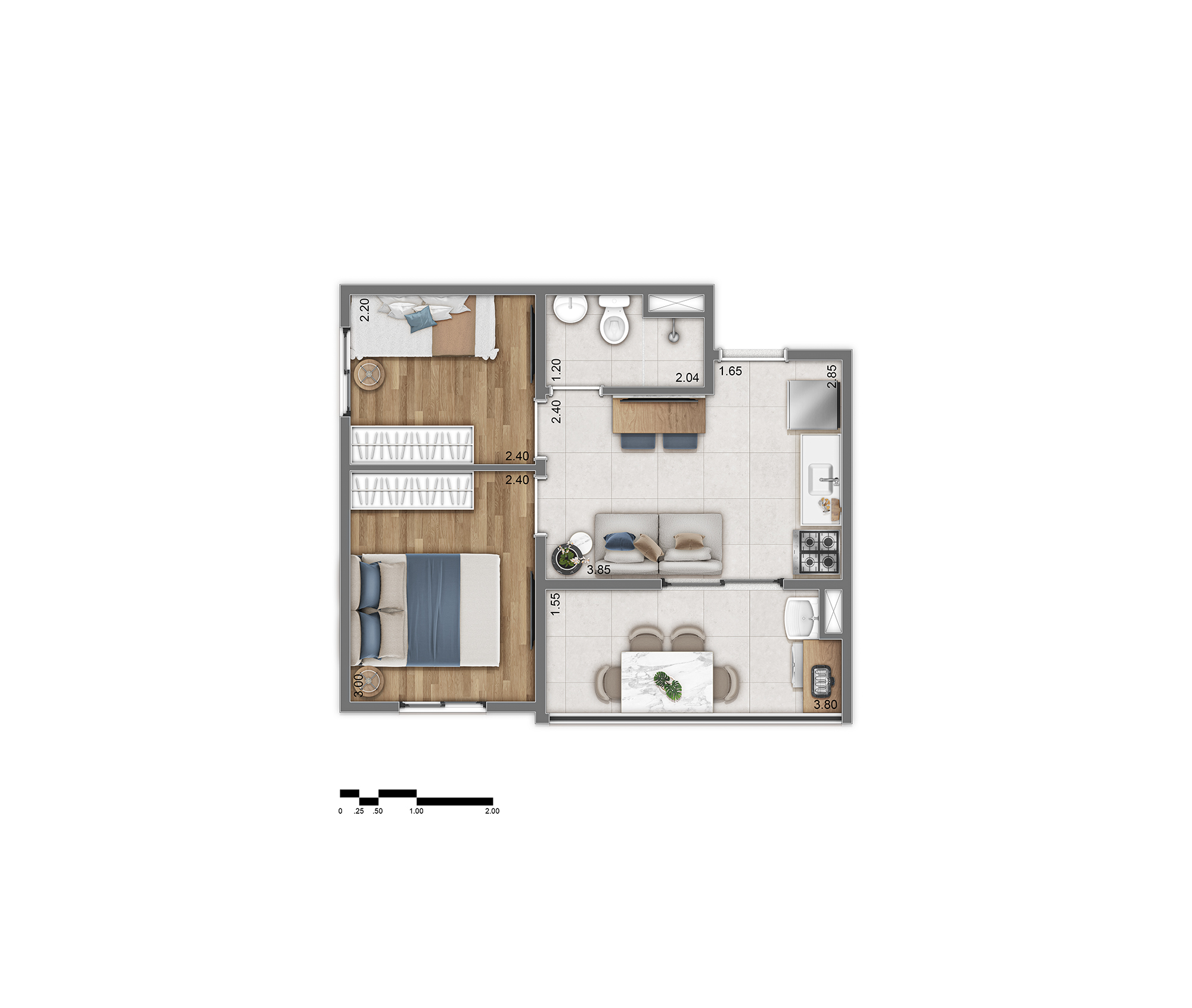 Tipologia D: Aprox. 38 m² (58 unidades)